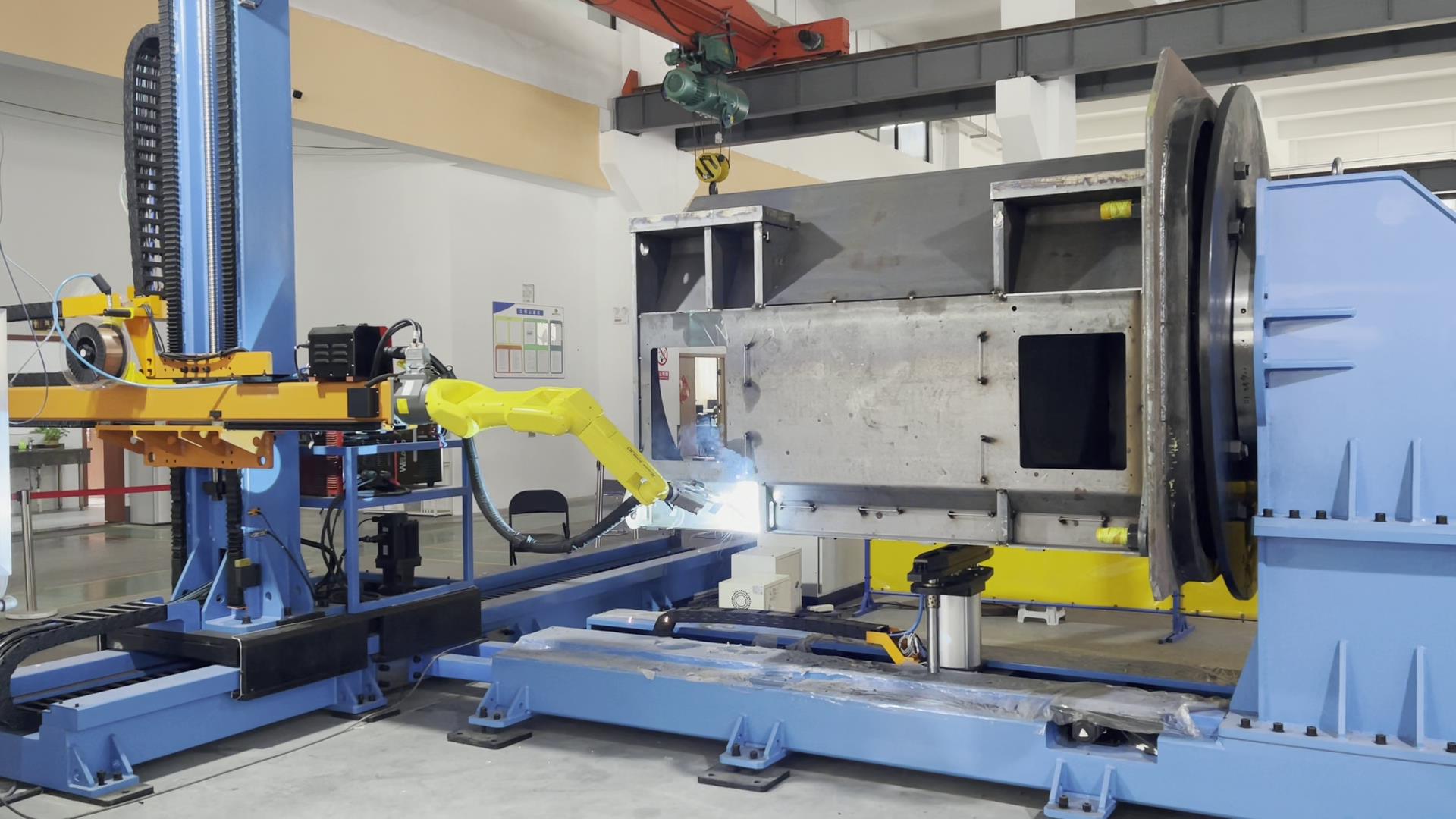 智能焊接在鍋爐/壓力容器行業(yè)的成功應(yīng)用 鍋爐吊桿的耳板,多為坡口多層多道的焊接工藝要求,針對耳板的焊接需求,威卓設(shè)計了耳板焊接小產(chǎn)線--整個